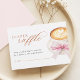 Announce your baby shower diaper raffle with this adorable enclosure card featuring a sweet watercolor illustration. The design centers around a delightful cup of coffee, showcasing a heart-shaped latte art and a pretty pink bow, creating a warm and inviting feel. This card clearly communicates the diaper raffle rules: guests are invited to bring any size diaper for a chance to win a special prize, and there's a space for them to write their name. It’s an ideal way to add a fun, interactive element to your baby celebration and collect much-needed diapers. Let this charming card set the tone for a memorable and well-prepared baby shower.