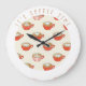 Cute Latte Art in Red Coffee Mugs Pattern Large Clock