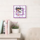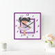 This cute wall clock for a little girl features a dark haired ballerina in pose dressed in a lavender tutu. The image is set against a double darker violet purple square frame. At the bottom is her name, also in lavender, but you may remove the text, if you'd like, by clearing the field. The numbers are in matching violet, and the clock is finished with a matching violet outer frame. *Thanks to Real Deal Clip Art for the use of artwork in this design.*