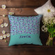 Cute throw pillow featuring a lavender pattern with watercolor flowers and a name, all set against a light teal background. This adorable pillow showcases a delicate lavender floral design rendered in a watercolor style, complemented by a personalized name detail. The light teal backdrop enhances the overall charm of this decorative throw pillow.