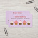 These cute lavender purple bakery business cards have chocolate and vanilla cupcakes with sprinkles and cherries on top. Perfect for pastry chefs, modern cupcake and cake businesses and bakeries.