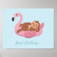 Cute Lazy Sloth on Pink Flamingo Float Print