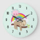 Cute Lazy Sloth with Sun & Rainbow Large Clock