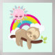 Cute Lazy Sloth with Sun & Rainbow Poster