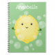 This cute yellow lemon is swimming in bubbles on a green background. Drawn in adorable cartoon illustration style. Simply sweet!