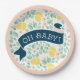 Cute Lemon Yellow Pink Botanical Baby Shower Paper Plates