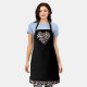 Stylish black apron featuring a trendy cheetah leoapard animal pattern print filled heart shape and personalized white name print at the side.