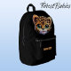 Prepare for a wild adventure with our black wildlife backpack featuring the face of a cute kitten leopard cub jungle safari animal cartoon graphic! This charming baby leopard woodland creature kitty cat adds an adorable playful touch to the bag, making it a standout choice for any adventurer.