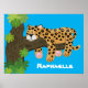 Cute leopard sleeping cartoon illustration poster