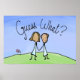 Perfect to announce an engagement, wedding or commitment ceremony with your partner this design features a cute and sweet image of a lesbian couple holding hands with the text "guess what".