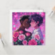 Cute bi-racial LGBTQIA+ gay anime couple embracing surrounded by hearts and flowers. Cute personalized Valentine's Day card for the couple that loves anime! Add your photo and change your text in the personalize area.
