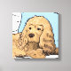 Here's a cute wrapped canvas for anyone who loves spaniels, particularly cocker spaniels. It features an illustration of a light-brown cocker spaniel leaning against a blue pillow. A fun decoration for a little boy's room.