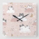 Cute Light Pink Kitten Pattern Square Wall Clock