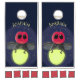 Natural Wood Cornhole Set, Yellow and Purple bags