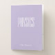 A cute, trendy custom set of pocket folders to take to physics class or for homework with a simple, minimalist cover in pretty lilac purple and space for the school subject and your name to be personalized.