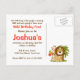 BEING ONE is ROARING FUN! Colorful first birthday design featuring a cute happy lion wearing a polka dotted party hat, balloons, jungle palm trees and big polka dotted number 1. Personalize it with your own custom message! PinkInkArt original!