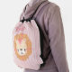 Cute Lion and Monogram on Pink Candy Striped Drawstring bag. Ideal for school use for for extra curricular activities, e.g. dance class. Can be customized with childs name.
