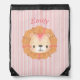 Cute Lion and Monogram on Pink Candy Striped Drawstring Bag