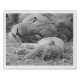 Black and white image of a cute lion cub resting the the grass with it's father © and ® Bigstock® - All Rights Reserved.