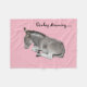 Cute little gray baby donkey foal sleeping on a baby pink background. Template text box can be easily changed to a message of your own choice. Message currently reads 'Donkey dreaming ....' Cute blanket... matching pillows and postcards can be found in my shop.
