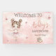 Cute ballerina and butterflies girl Baby Shower or Sprinkle "Welcome" design with pink alcohol and ink style pink background. Pair with items from our "A Sweet Little Ballerina Is On the Way & We're TUTU Excited!" design collection.