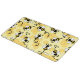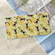 Seamless pattern with cute little flying bees and honeycomb decoration on pastel yellow background