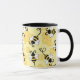 Seamless pattern with cute little flying bees and honeycomb decoration on pastel yellow background