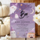 Celebrate the arrival of your little one with our enchanting Halloween Baby Shower Invitation, designed to delight and charm. Featuring adorable flying ghosts, a playful pumpkin, and whimsical spider webs against a soothing lavender purple background, this invitation sets the perfect tone for your spooky yet sweet gathering. With falling stars adding a touch of magic, it's an ideal way to invite friends and family to join in the festivities as you prepare for your "little boo" to arrive. Make your baby shower unforgettable with this unique and festive invitation!