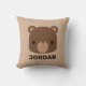Cute Little Brown Bear with Personalized Name Throw Pillow