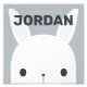 This design features cute little bunny rabbit with personalized name in grey modern sans serif font style on light grey background.
