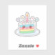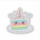 Centered print design featuring a kawaii flat illustration of a small rainbow cake slice on a plate. The cake has a smiling face with big eyes and rosy cheeks, topped with colorful sprinkles and a tiny candle.