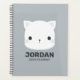 This design features cute little cat with personalized name in grey modern sans serif font style on light grey background.