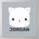 This design features cute little cat with personalized name in grey modern sans serif font style on light grey background.