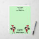 A little Christmas elf chibi with long brown hair and wearing a santa suit on adorable pale green letterhead stationery for the holidays.