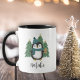 This adorable Christmas mug features a hand drawn penguin, wearing a hat and scarf in teal blue. He's standing in front of some Christmas trees and holding a gingerbread man cookie. A text template with stylish font is included for easy personalization! *Original Illustration by Orabella Prints.