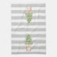 Cute Christmas decor for your kitchen. Little Christmas tree with monogram against gray and white stripes.