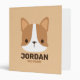 Cute Little Corgi Dog with Personalized Name 3 Rin Ring Binder
