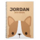 This design features cute little corgi dog cartoon illustration with personalized name in brown modern sans serif font style on light brown background.