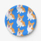 Cute Little Corgi Pattern Blue Custom Paper Plates