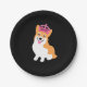 Cute Little Corgi Princess Wearing a Pink Crown Paper Plates