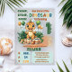 So exciting! Where has the last year gone? It has flown by, right? Time to celebrate your little one in prehistoric style with this cute "Chomp, Stomp, Rawr!" "Our Cute Little Dinosaur Is Turning 1" boy's 1st Birthday Party design. Perfectly color coordinated in nature tones of dark green, dark blue, rust, sand beige and pale muted teal blue, it sets the perfect stage for your prehistorically-themed celebration. The cute little dinosaur has a big old grin on his face as he sports a party hat, some lit candles and is surrounded with presents and balloons on a backdrop of jungle-themed greenery. The letters of "Dinosaur" and the age "1" are done in a custom dinosaur-themed type. This unique design is sure to impress your guests as well as your cute little dinosaur!