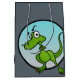 Funny little dinosaur illustration medium gift bag. Background front and back colors are customizable. Matte finish can be changed to glossy finish.