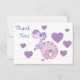 This cute nursery thank you card features an adorable little lavender baby dinosaur surrounded by purple hearts. The back of the card has another dinosaur image and heart, and a custom text field. Perfect for baby shower or baby gift thank yous. Be sure to see the matching baby products in our store. *Image design credit to AT Art Digital.