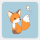 Cute Little Fox Watching Butterfly on Blue Square Sticker