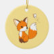 Cute Little Fox Watching Butterfly on Yellow Ceramic Ornament