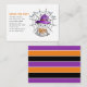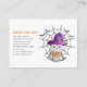 Cute little watercolor ghost Books for baby Halloween baby shower Enclosure Card. This adorable enclosure card for a baby Halloween shower showcases a charming little ghost adorned with a purple witch hat. Behind the ghost, there's a whimsical spiderweb decorated with playful bats, adding a fun and spooky touch. The card prominently displays the phrase "Books for baby," making it clear that guests are encouraged to bring books as gifts. The background is a clean white, which helps the colorful elements stand out beautifully. On the reverse side, there's a delightful pattern of stripes in purple, orange, and black, perfectly capturing the festive spirit of Halloween while maintaining a cute and inviting vibe.