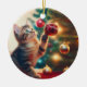 Cute Little Kitten Playing With Christmas Bulb Ceramic Ornament