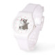 I only have one complaint. I ordered the watch with clear case and strap, and what was sent was white case and strap. I'm going to keep it because 1) it looks very nice in white, and 2) it would take too long to get a replacement made and sent in time for my occasion. Aside from the mix up with the color, the watch does look very good in white. The purple dial is actually sparkly which did not show in the online images. That was a nice surprise. If you like Swatch watches this is very similar to those. It's 33.6mm in diameter, 10.5mm thick, and 40.6mm lug to lug. Stainless steel case back says 3ATM/30m WR, so no swimming or showering or submerging this one. If you like Woodstock, this is a great choice.