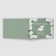 Cute little lamb theme baby shower guest book featuring an illustration of a baby sheep laying down with a sweet smile on her/his face. There are white magnolia flowers on the sides. The background is green and perfect for both baby girls and boys.