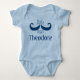 This adorable infant creeper, t-shirt, bodysuit, baby romper or baby gown (your choice) for your baby boy is a cute and colorful take on the popular "little man" mustache theme for babies. Cute curly moustache and type in stylish nautical blue.